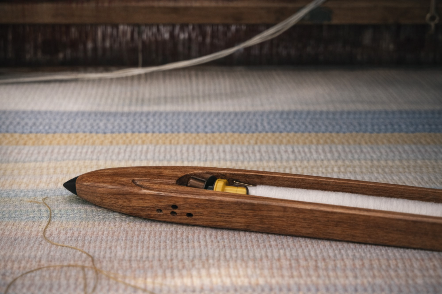 All Vyanni fabrics begin with pure, pre-dyed cotton. Each hank is wound and warped by hand before weaving begins. Thousands of cotton threads are carefully guided into place, one by one, through a process that demands focus, rhythm, and time.